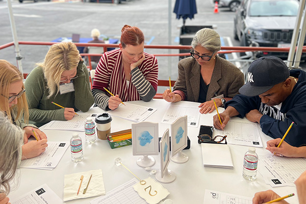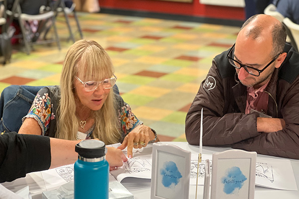 The parents and guardians then rotated in groups through six ten-minute stations moderated by Westmark faculty and staff. The stations included two reading, two writing, and two listening activities, plus time to debrief after each. Over the course of the simulation, the facilitators guided attendees through timed worksheets and tests that simulated what it would be like to complete classwork when challenged by dyslexia, dysgraphia, or visual or auditory processing challenges. All the while, the facilitators play-acted as if they were instructors who were unaware of the struggles LD students endure. Conveying impatience and frustration, the facilitators rushed and reprimanded those who were confused or struggling to focus, and they repeatedly reminded the attendees that their work—no matter how successful—would be displayed publicly.
