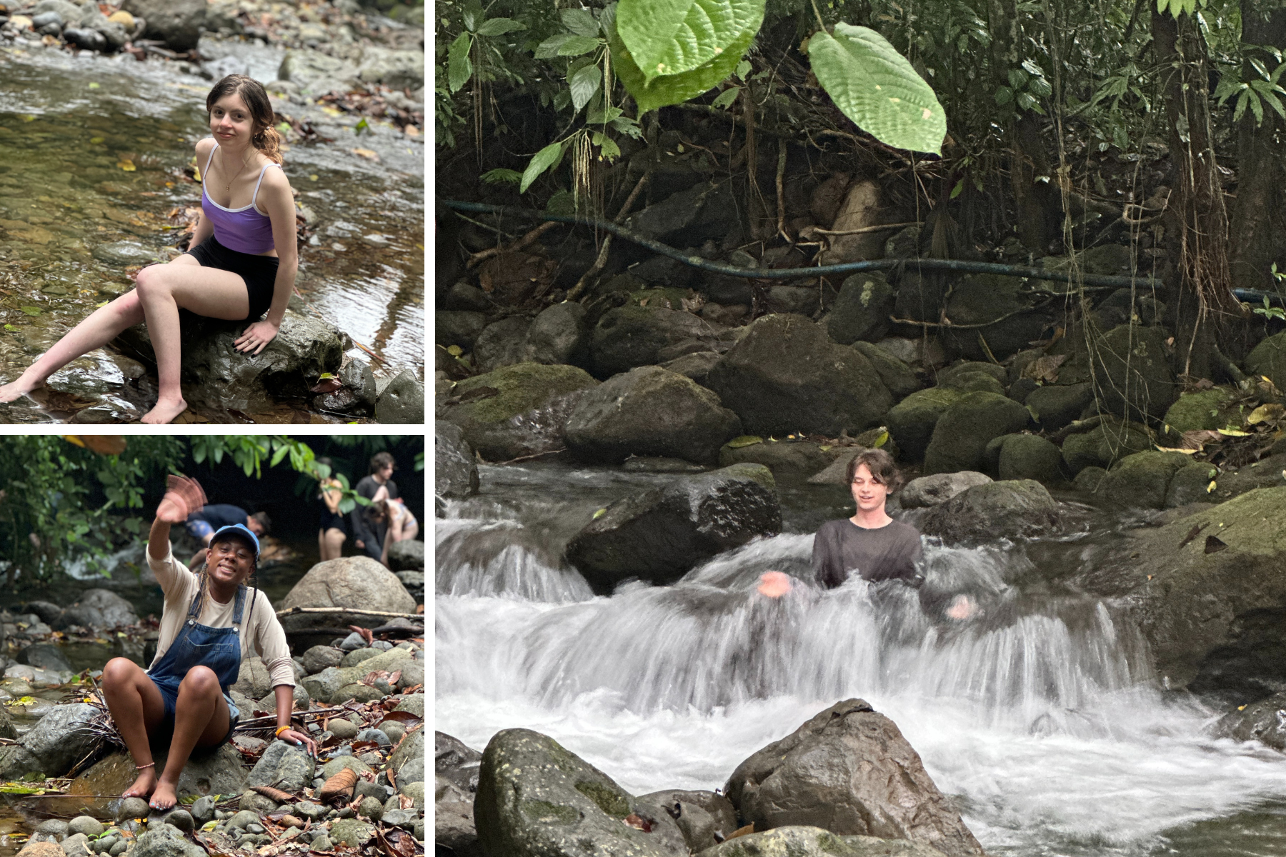 Three photos of teens sitting in water
